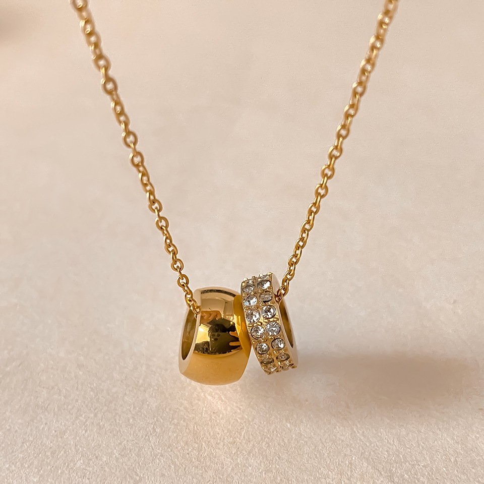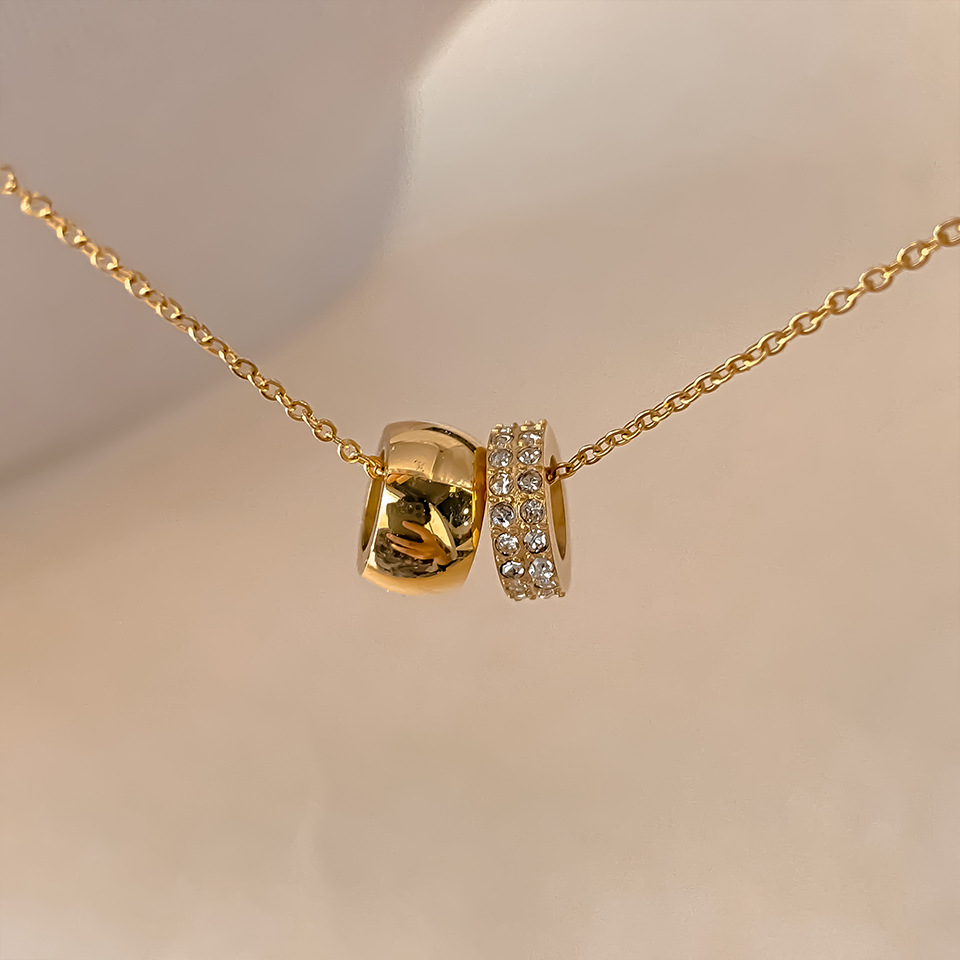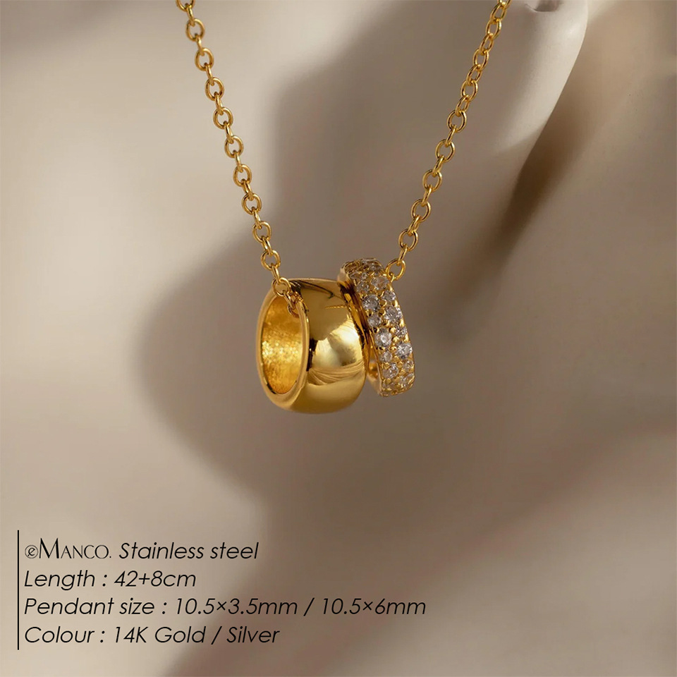 14k Wide-Frame Round Hoop Dual-Pendant Versatile Necklace