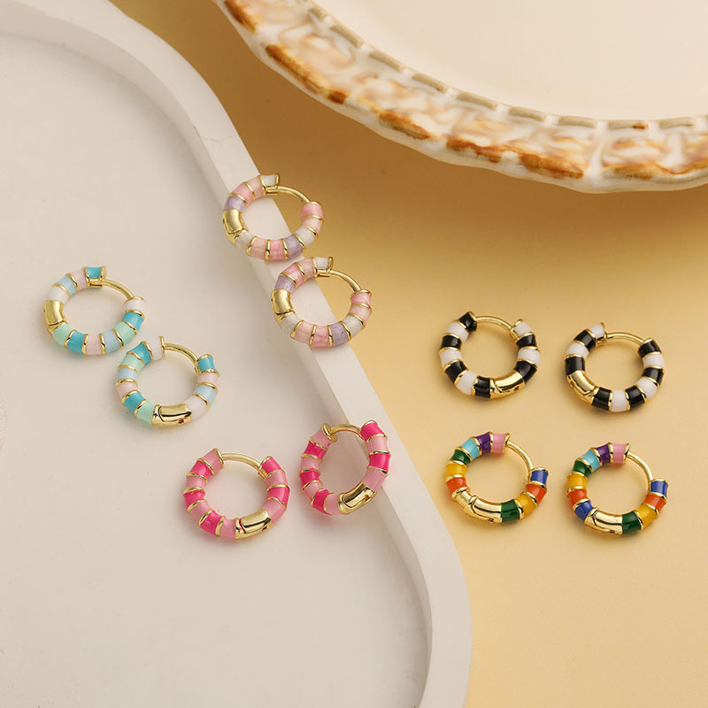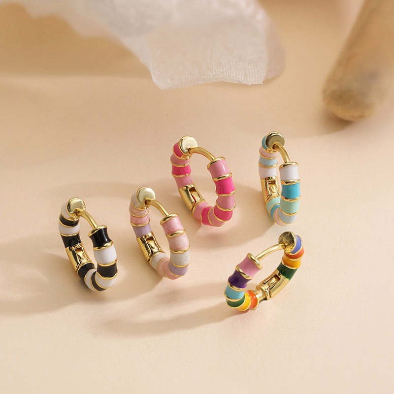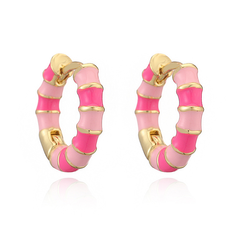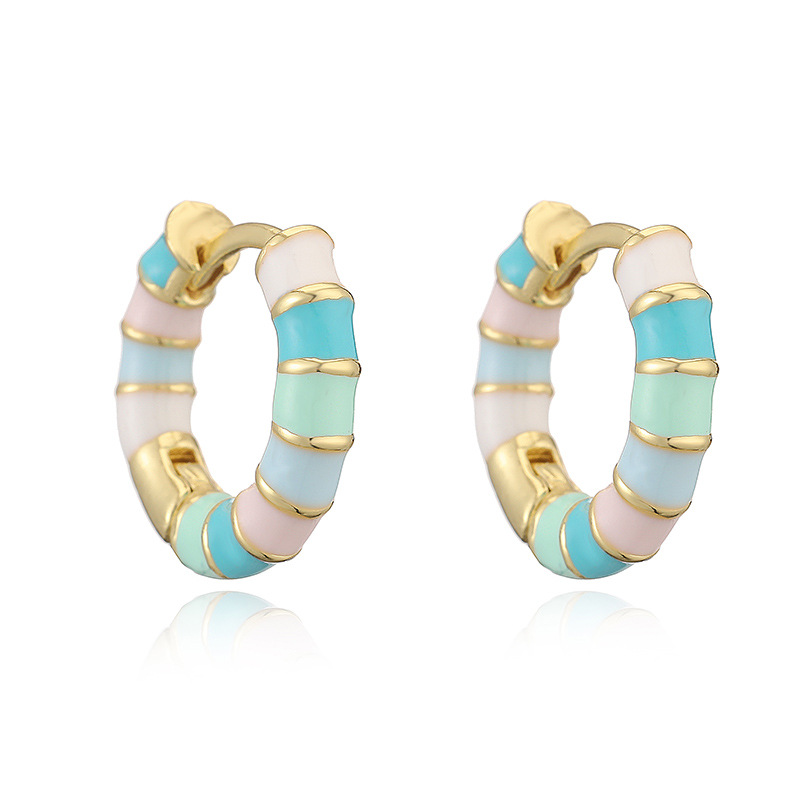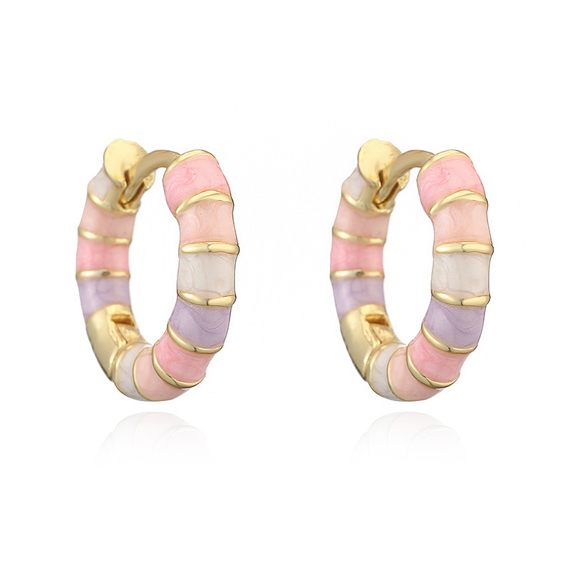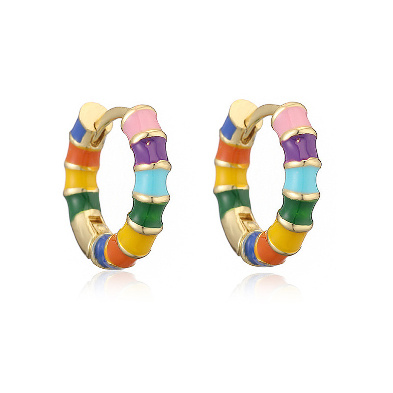 Colorful Dripping-Oil Circle Bamboo-Section Ear Clips