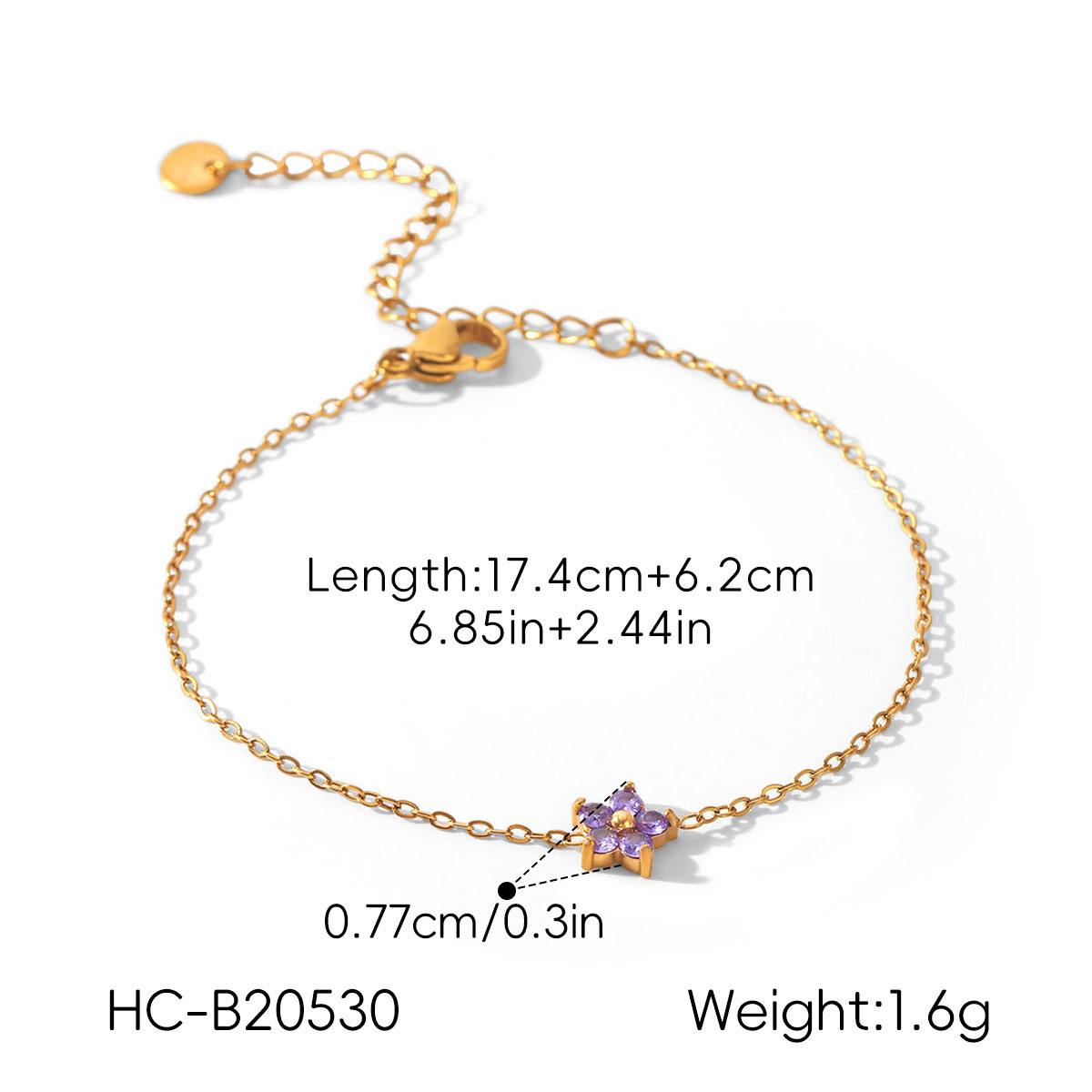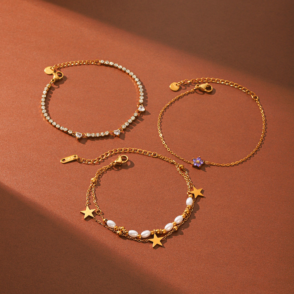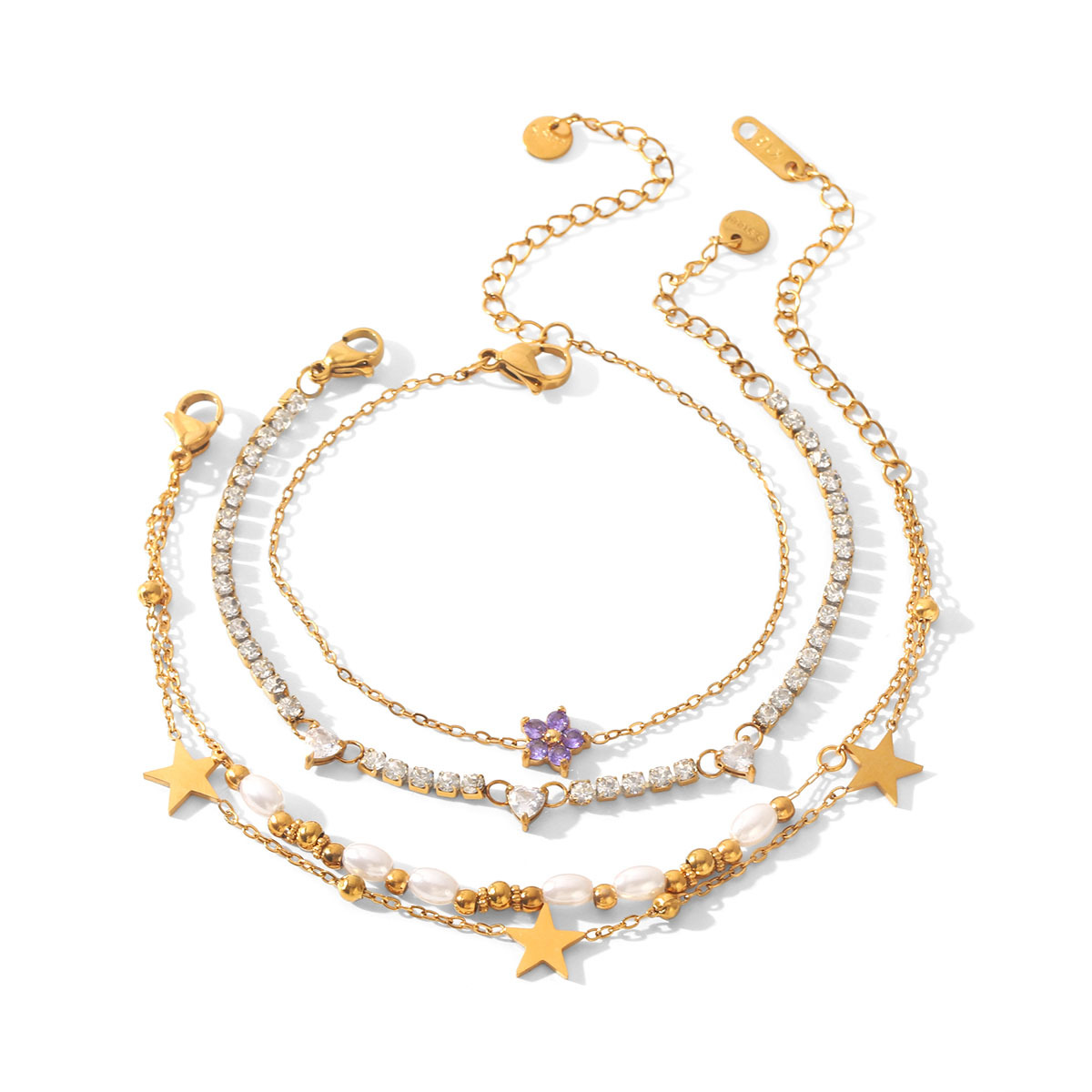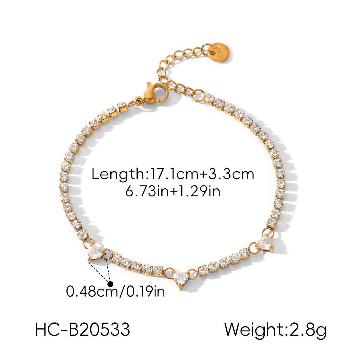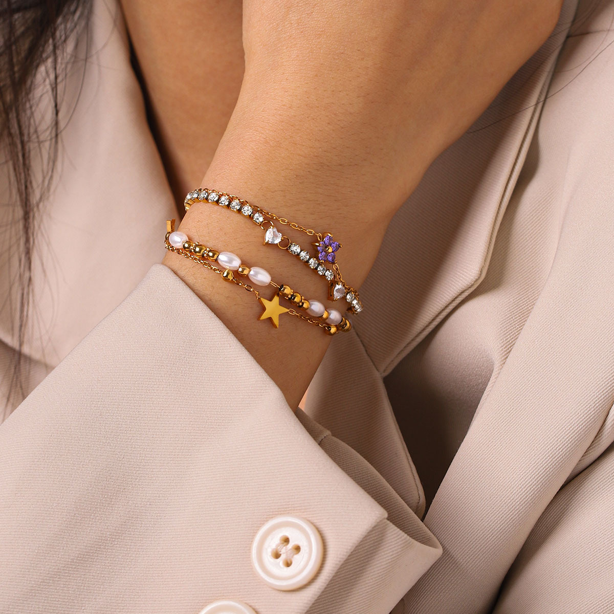 Resort-style 18K Gold Stainless Steel Zircon Bracelet